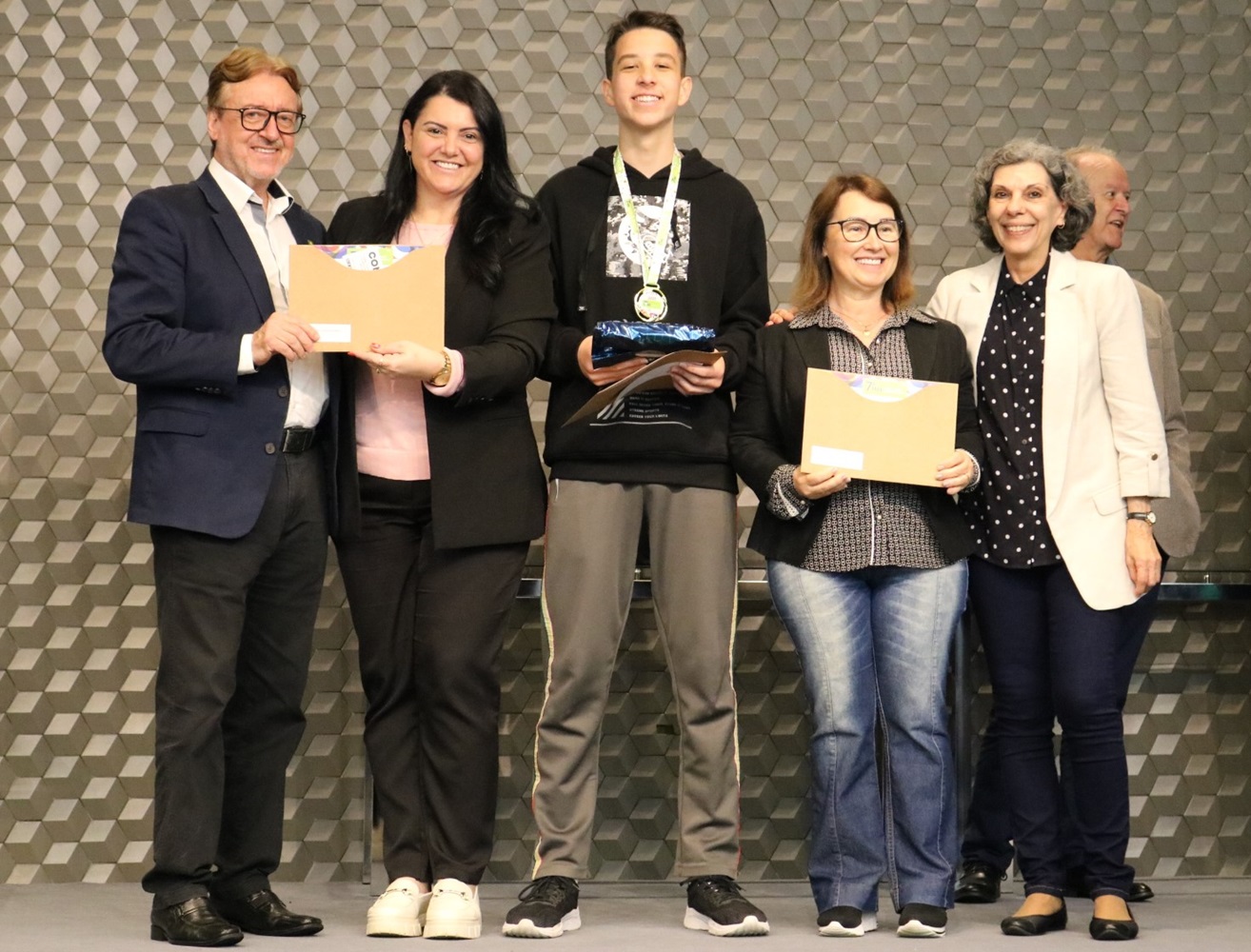 Ainda, quem conquistou a maior pontuação entre esses sete estudantes levou um brinde extra, garantindo também reconhecimento a sua escola e a sua professora, Ana Lúcia Pintro. A conquista coube a Luiz Felipe dos Passos Possamai, aluno do oitavo ano da escola Padre José Francisco Bertero, da rede municipal de Criciúma.