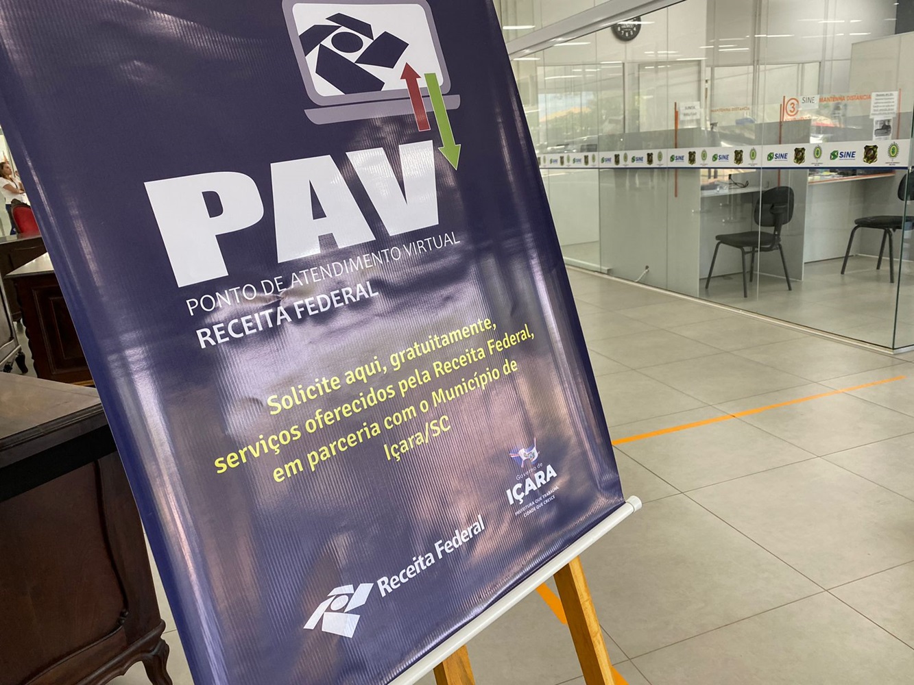 Começou a funcionar nesta quarta-feira, dia 6, o Ponto de Atendimento Virtual (PAV) da Receita Federal dentro da Prefeitura de Içara. Em uma parceria inovadora entre o Governo Municipal e o órgão, os contribuintes içarenses poderão acessar os serviços de uma maneira mais cômoda, sem precisarem se deslocar a outras cidades. A iniciativa é pioneira no Sul do Estado.