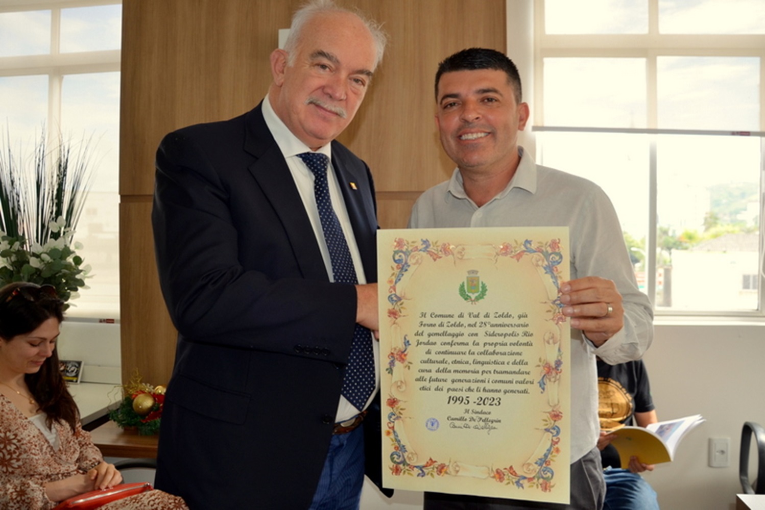 O representante zoldano também entregou o documento de renovação do Gemellaggio, encaminhado pelo prefeito Camillo De Pellegrin e agradeceu pela recepção e pelo acolhimento dos sideropolitanos.