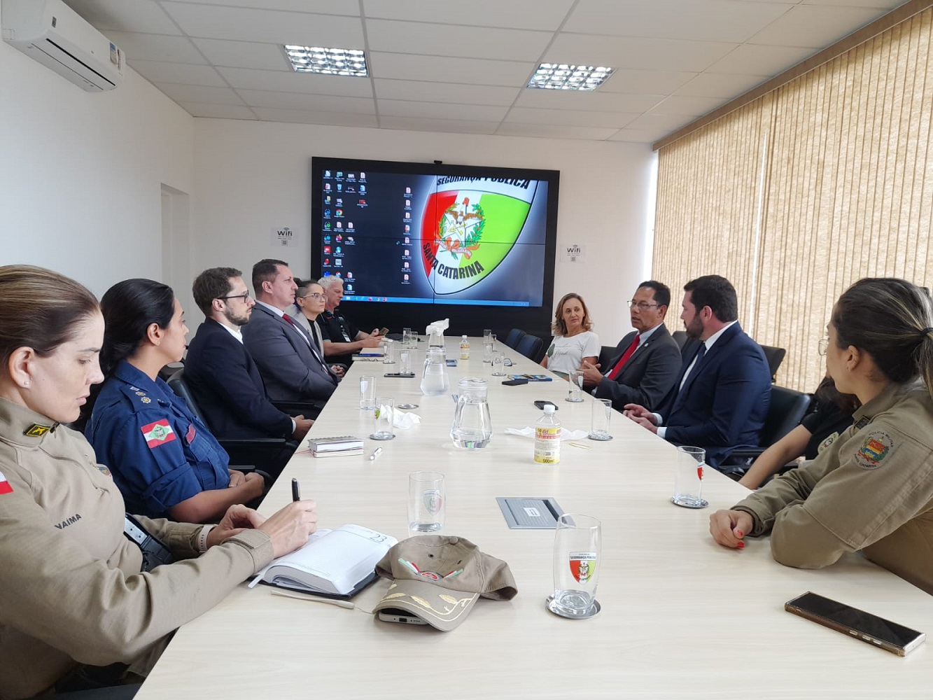 A Secretaria de Estado da Segurança Pública (SSP-SC) coordenou nesta segunda-feira, 22, uma reunião com instituições envolvidas nos esforços conjuntos em busca da redução da violência contra a mulher e dos feminicídios no estado. O objetivo do encontro foi buscar alinhamento e ações integradas de prevenção e enfrentamento a esses delitos em Santa Catarina. Os trabalhos foram presididos pelo secretário adjunto da Segurança Pública, Freibergue, Rubem do Nascimento.