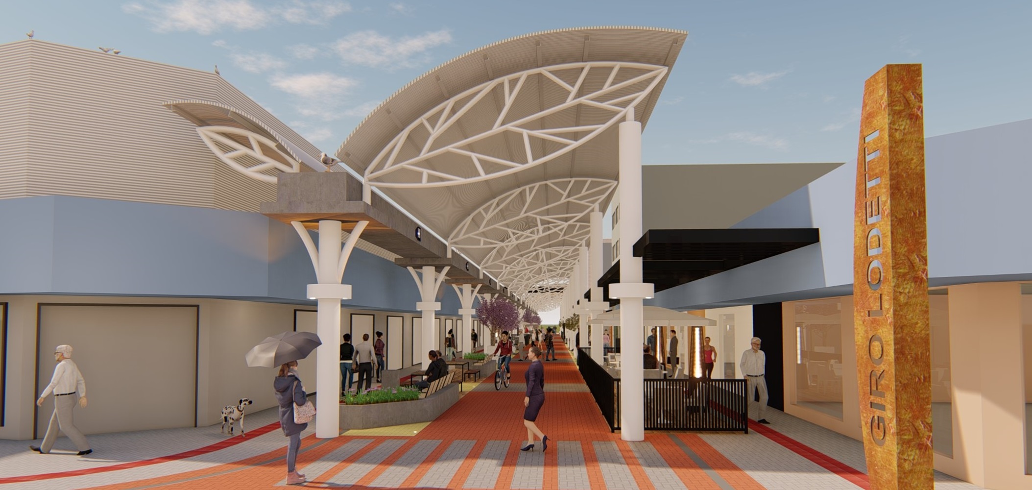 A Rua Coberta – Giro Henrique Lodetti foi inspirada no Passeio São Miguel, de Balneário Camboriú, e faz parte da renovação do Centro de Criciúma. Possui estrutura metálica e telhado em telha ausente, policarbonato e pergolado em madeira. A cobertura conta com formatos de triângulos e losangos, lembrando folhas e trazendo a sensação de aconchego. O paver da via é colorido, para facilitar o trânsito, priorizando os pedestres. Já no espaço destinado aos comerciantes, o piso é cerâmico, imitando madeira.