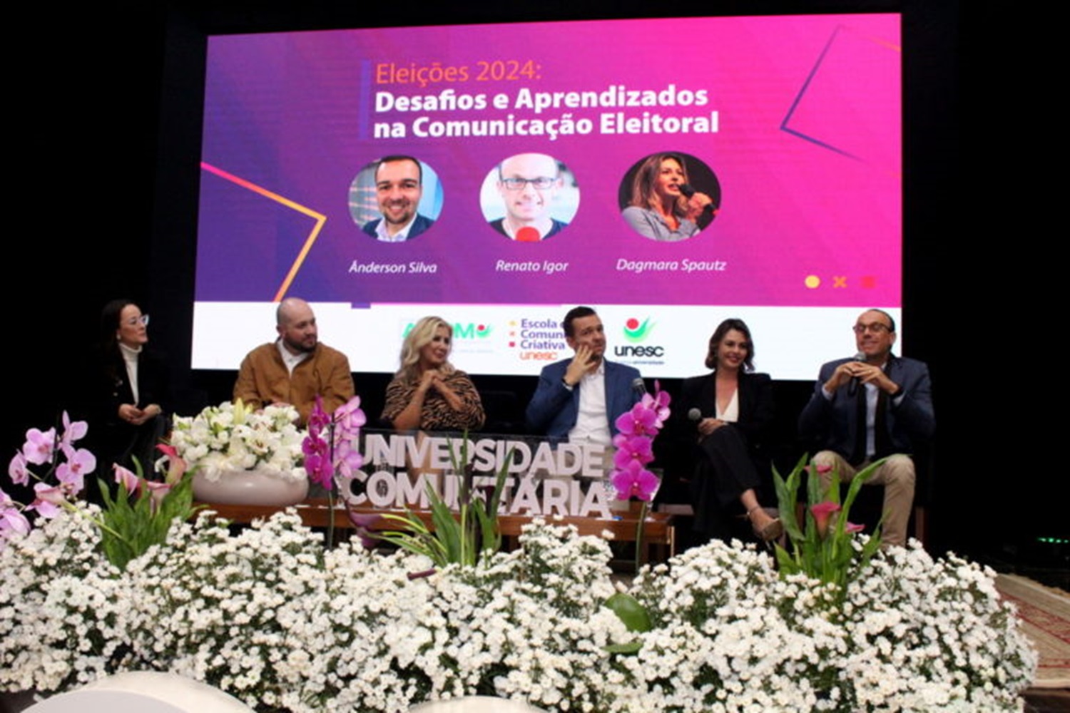 A troca de experiências e o compartilhamento de conhecimentos marcaram a noite dessa quarta-feira (15/05), na Unesc, durante o painel “Eleições 2024: Desafios e Aprendizados na Comunicação Eleitoral”. O evento, promovido pela Escola de Comunicação Criativa (EcoCria) e pela Assessoria de Imprensa, Comunicação e Marketing (Aicom), da Universidade, contou com a participação dos jornalistas da NSCTV, Ânderson Silva, Renato Igor e Dagmara Spautz.