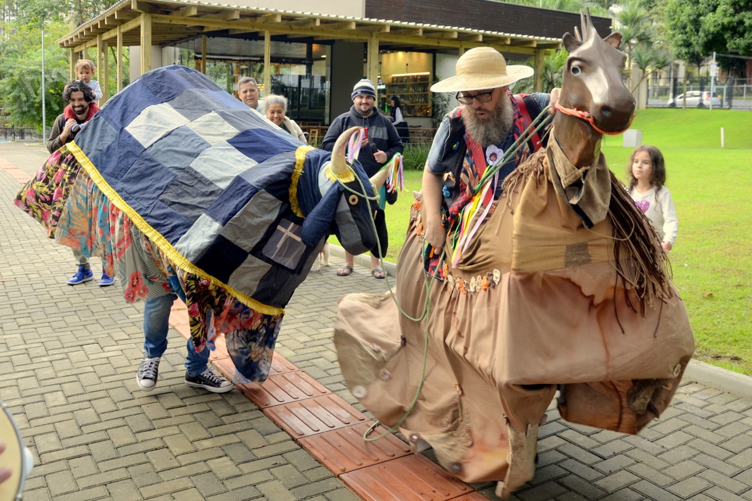 O domingo marcou o encerramento de uma série de quatro encontros realizados junto ao projeto “Boi de mamão, que história é essa?”, ministrada pelo Grupo Cultura Manoeira, de Criciúma. Após oficinas realizadas na Unesc e na Fundação Cultural de Criciúma, os participantes do projeto estiveram na Praça do Congresso animando os presentes com uma apresentação de Boi de Mamão.