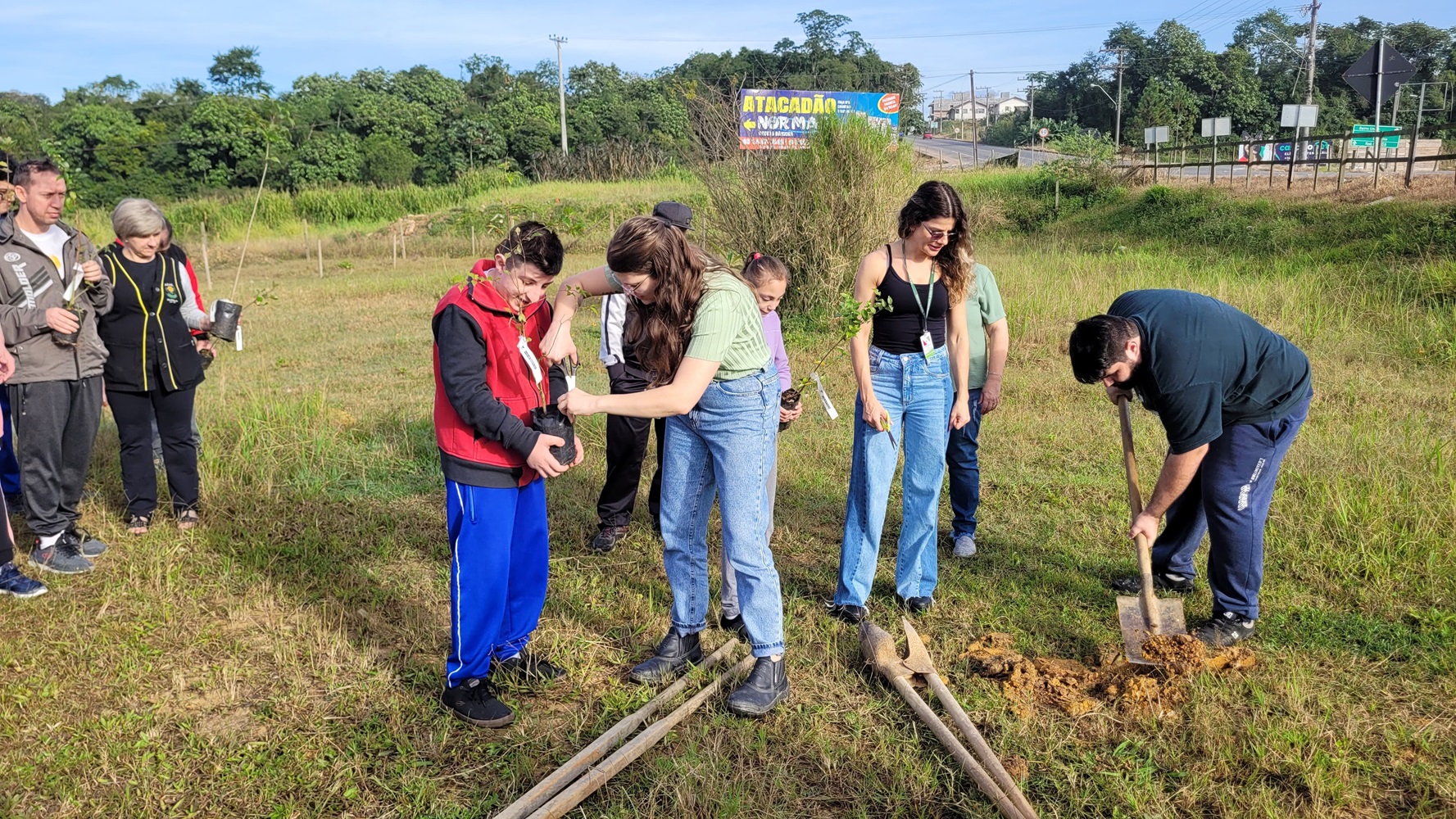 A ação foi realizada nesta segunda-feira, quando os alunos participaram ativamente do processo de plantio.