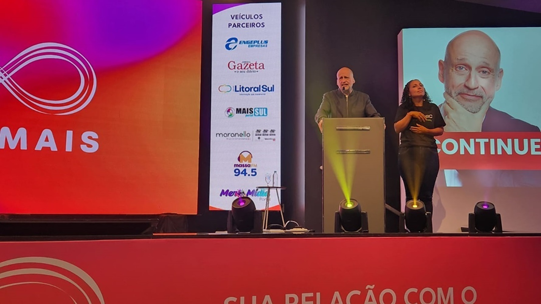 A grande jornada de conhecimento e conexões da ExpoMais 2024 foi encerrada nesta quarta-feira, 23, na sede da Associação Empresarial de Criciúma (Acic), com uma mensagem de amor ao trabalho. O professor doutor Clóvis de Barros Filho proferiu a última palestra da oitava edição e provocou o público a refletir sobre o tema.
