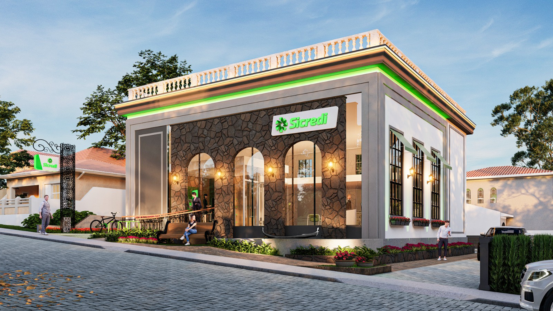 Os detalhes arquitetônicos trazem traços da cultura da cidade com elementos que remetem à Itália. “Essa nova unidade é muito mais do que um espaço de atendimento. Ela é um marco arquitetônico que celebra as raízes culturais de Nova Veneza e reforça o papel do Sicredi como parceiro da comunidade, não apenas nas soluções financeiras, mas também na valorização da história e da identidade local”, afirma Aloísio Westrup, presidente da Sicredi Sul SC.