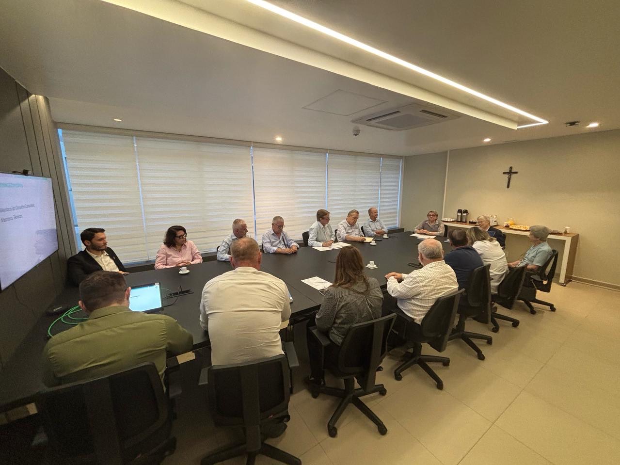 A reunião contou com a presença da diretora institucional do hospital, Irmã Terezinha Buss, da da presidente da mantenedora, Irmã Olivia Boniatti, além de representantes da diretoria da instituição que reforçaram a importância e as responsabilidades dos conselheiros. De forma voluntária, os membros do Conselho Consultivo têm um papel fundamental de colaborar com a análise, avaliação e orientação das demandas estratégicas da Instituição, contribuindo para o fortalecimento e o desenvolvimento do Hospital.