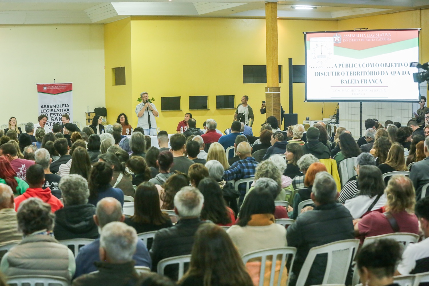 Discutir o território da Área de Proteção Ambiental (APA) da baleia franca, o plano de manejo da unidade e seu papel socioambiental, promovendo um diálogo entre a população e os órgãos competentes. Foi justamente com foco no equilíbrio destes pontos – a preservação ambiental e os direitos dos moradores – que a Assembleia Legislativa promoveu, por meio da comissão mista criada para debater o Plano de Manejo da Área de Proteção Ambiental, uma audiência pública na noite desta segunda-feira (02), em Imbituba, litoral sul de Santa Catarina.