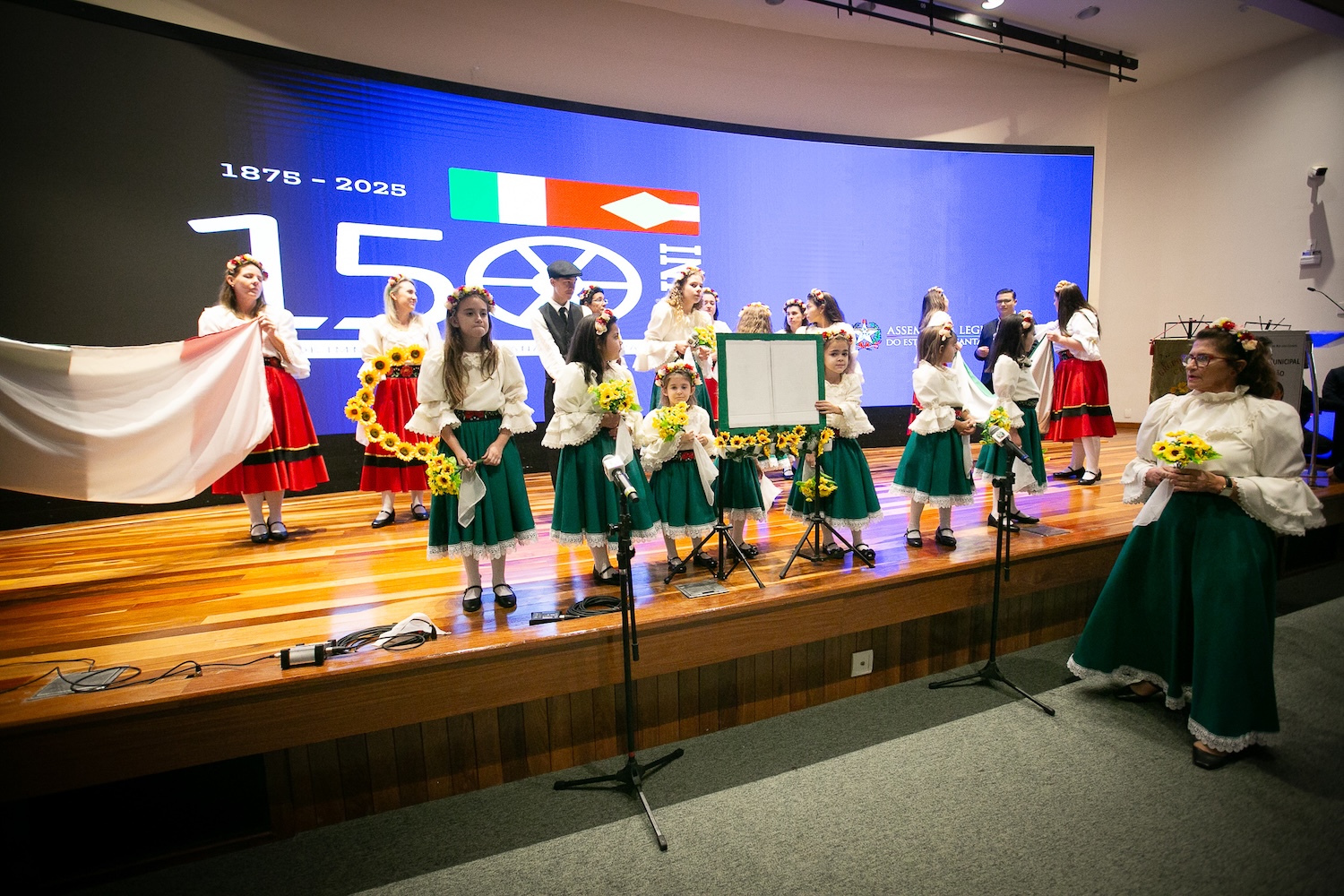 Além das apresentações culturais, a Assembleia Legislativa sediou Ato Parlamentar Solene para homenagear instituições e personalidades pela contribuição à valorização da cultura e da memória da imigração italiana em Santa Catarina.