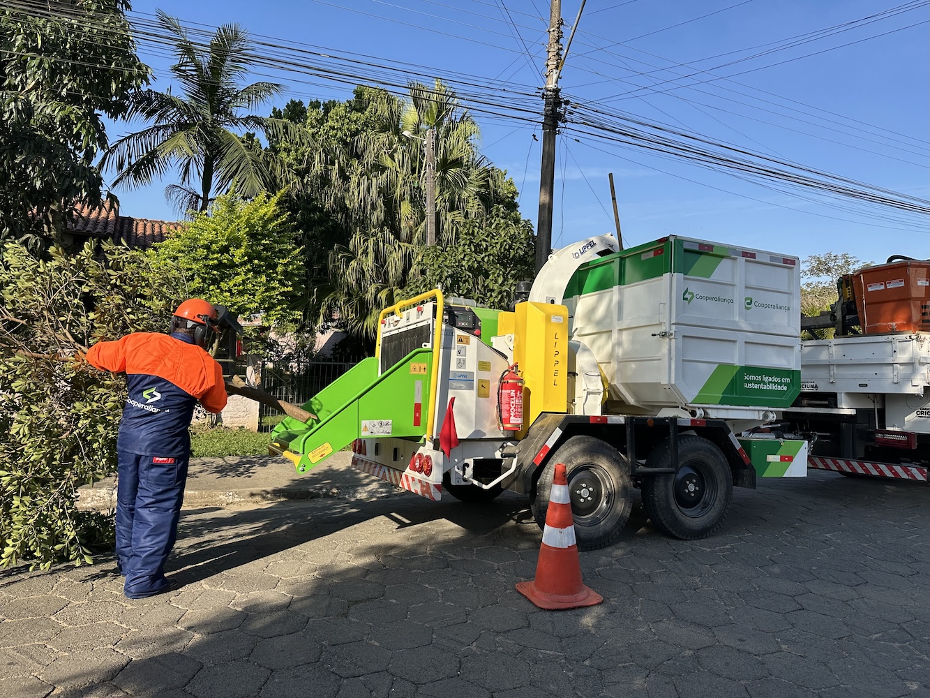 A Cooperaliança reforçou o serviço de manutenção de redes com a aquisição de um moderno triturador de galhos, que transforma os resíduos das podas de árvores em material orgânico reutilizável. A principal vantagem é garantir mais segurança no fornecimento de energia, já que a vegetação próxima à rede elétrica é a principal causa de interrupções, especialmente em áreas rurais.