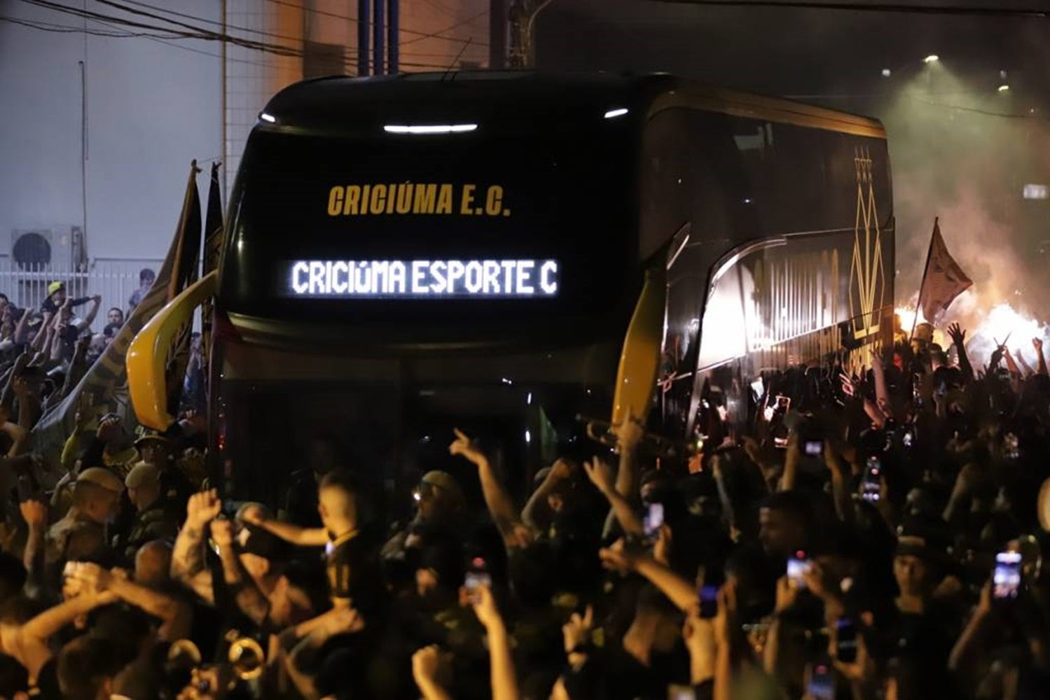 Antes da partida, a torcida carvoeira fechou uma das ruas de acesso ao estádio Heriberto Hülse e fez uma recepção ao ônibus do Criciúma com sinalizadores. A ação, em parceria com o clube, teve grande participação dos torcedores carvoeiros.