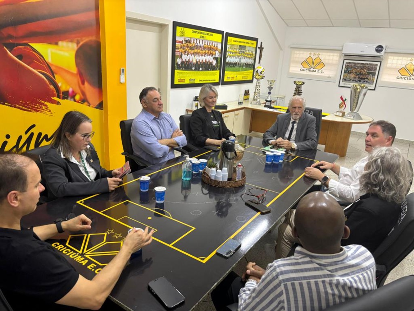 Um encontro entre presidente do Criciúma Esporte Clube, Valter Minotto, e reitora em exercício da Unesc, Gisele Silveira Coelho Lopes junto da equipe de gestão da Universidade, reforçou a parceria que une duas das maiores e mais representativas instituições do Sul catarinense, que desde 2021 têm somado forças dentro e fora de campo.