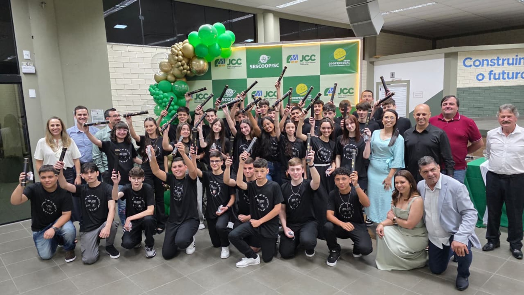 A noite da última quinta-feira, 27 de novembro, foi especial para 36 estudantes que concluíram o Programa Jovens Cooperativistas, desenvolvido pela Coopercocal em parceria com o SESCOOP/SC. A formatura aconteceu na sede social da cooperativa e reuniu familiares, instrutores, colaboradores e a diretoria. Depois de meses de aprendizagem, oficinas e vivências, os jovens receberam o certificado que marca o fim de uma jornada cheia de descobertas.