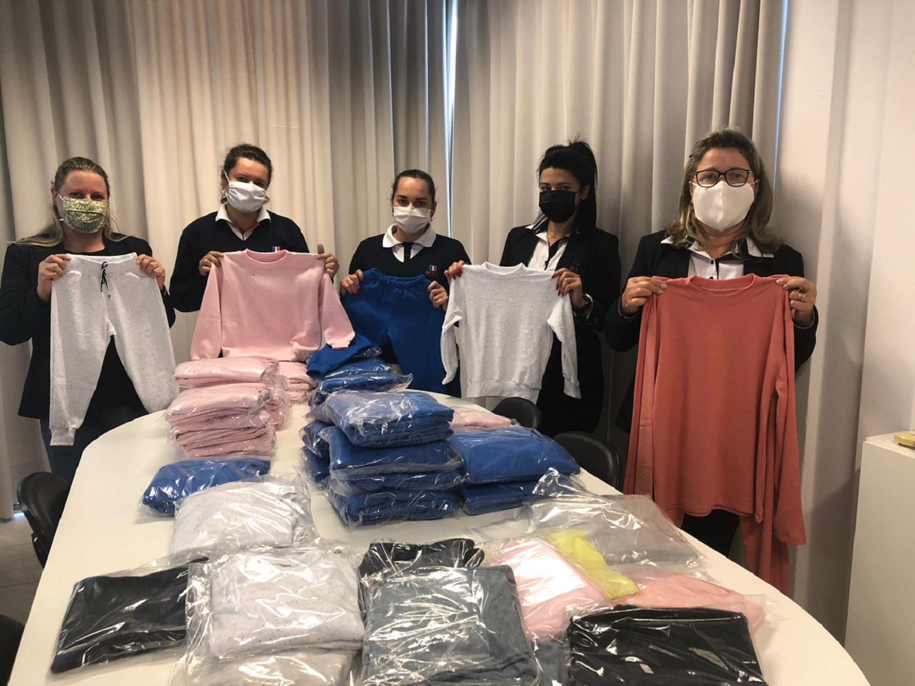Os tecidos foram doados pela Damyller, La Moda, Buzanelo Malhas e Aviamentos.