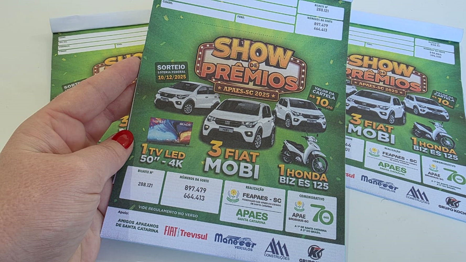 Leia maisSaiba como concorrer a carros, moto, TV e ainda ajudar as Apaes com só R$ 10