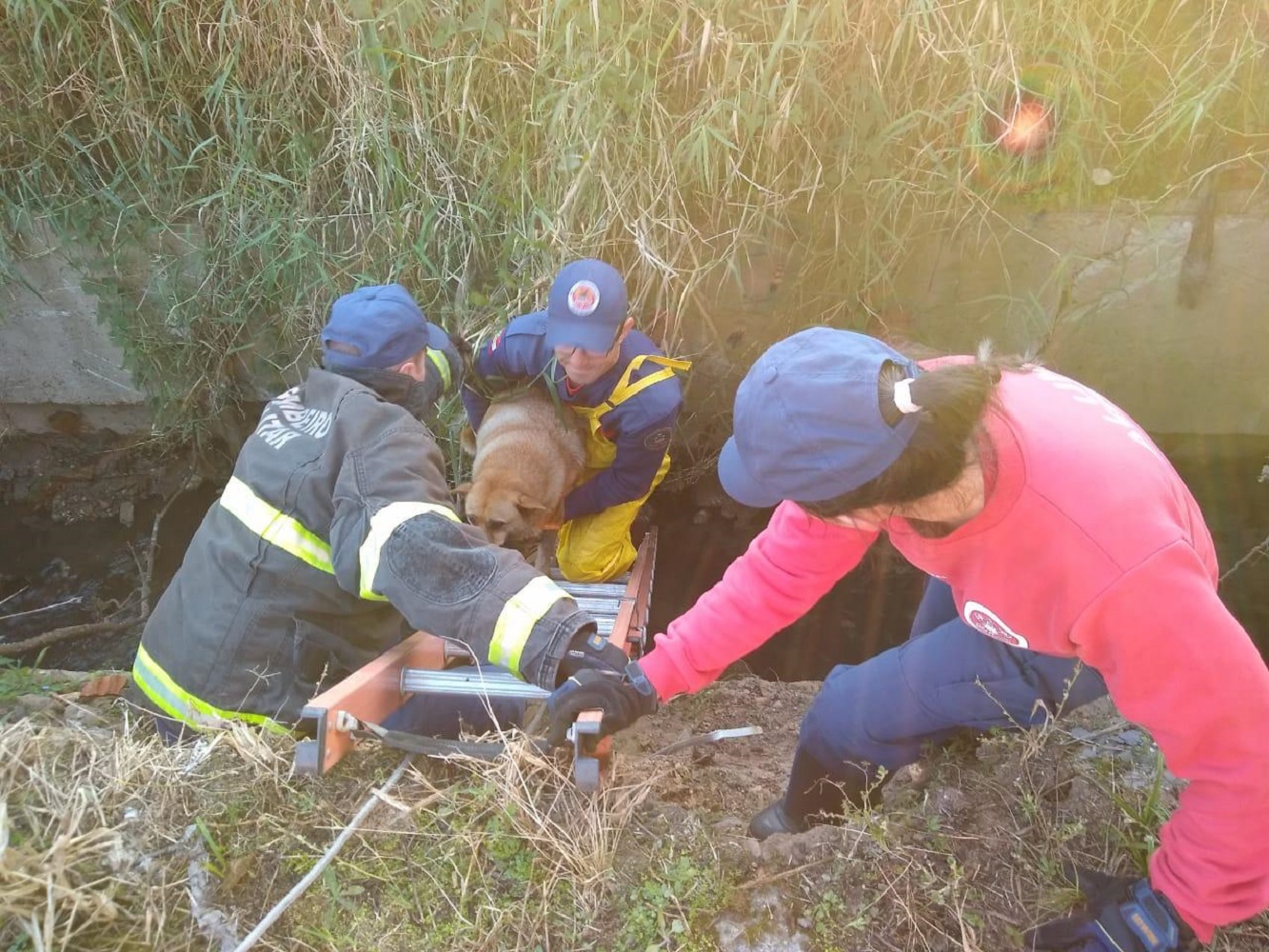 Bombeiros resgatam cão que caiu em rede de esgoto, em Criciúma
