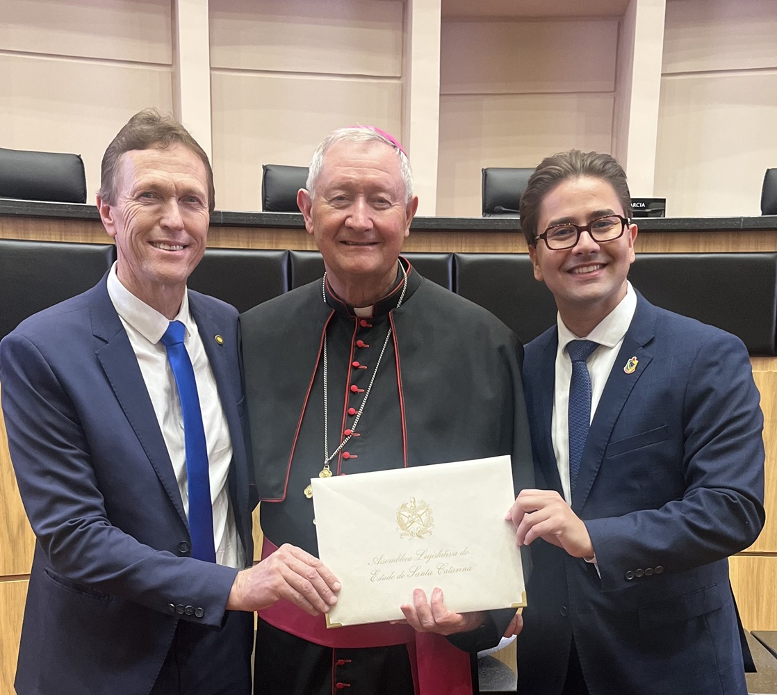 Deputado Volnei Weber entrega título de Cidadão Catarinense ao bispo Dom Jacinto Flach