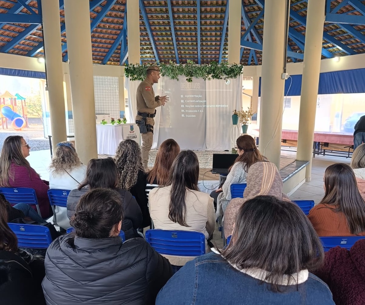 Comandante da PM apresentou o protocolo “Fugir, Esconder e Lutar” durante formação continuada.