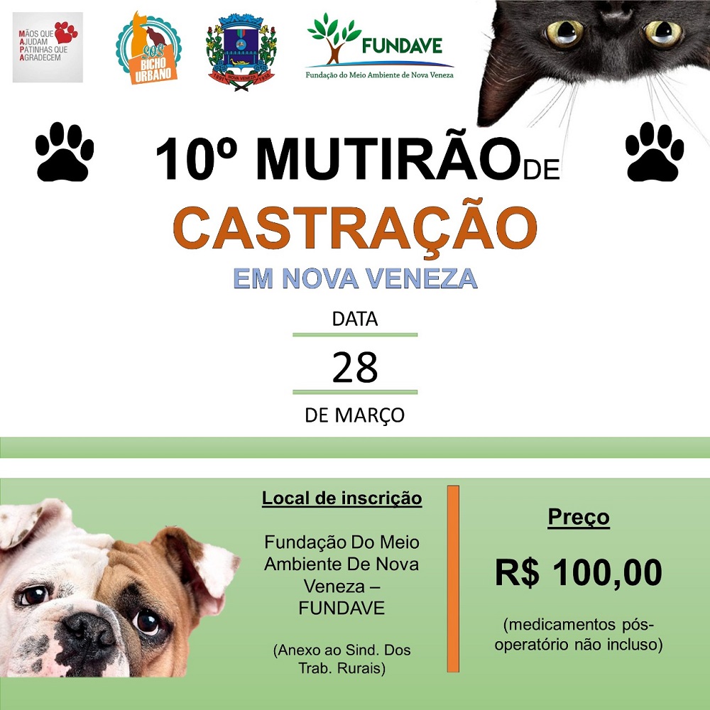 Inscrições abertas para o 10° Mutirão de Castração em Nova Veneza
