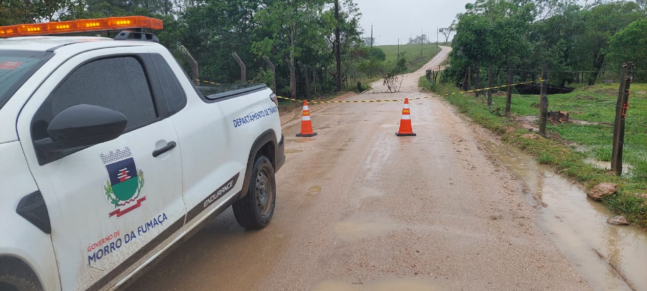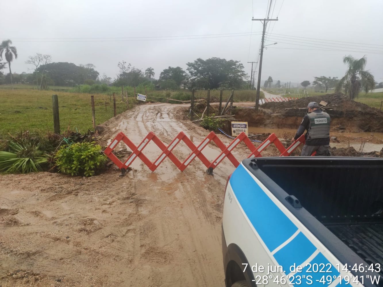 Carreamento de solo da cabeceira da ponte devido a chuva foi o que levou a interdição.