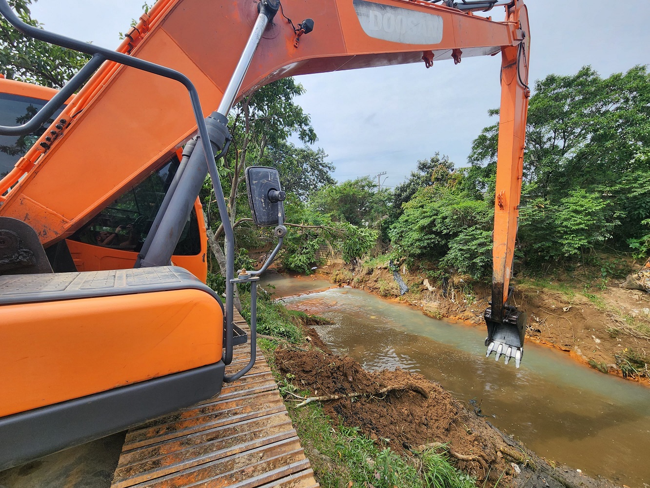 Trabalhos são realizados com auxílio de uma escavadeira hidráulica e reduz risco de alagamentos.