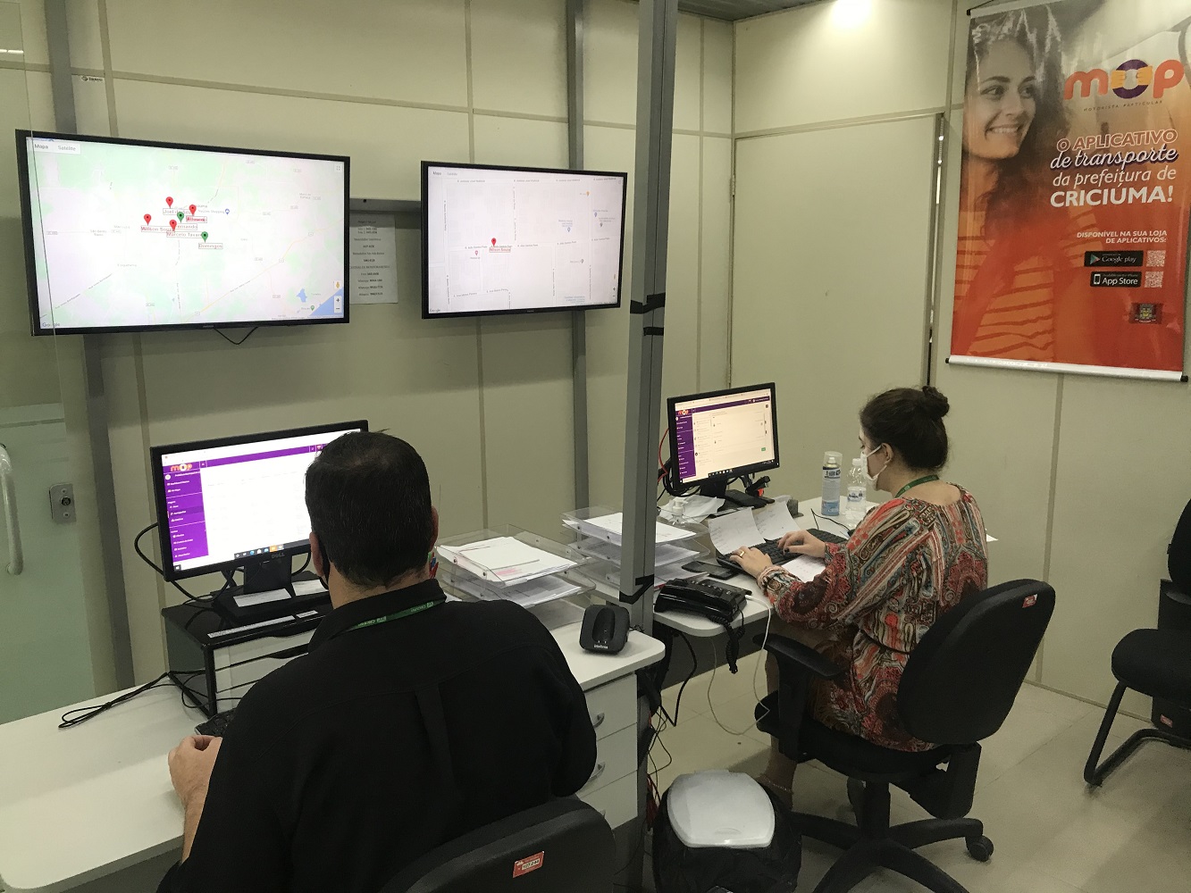 O sistema funciona através de solicitações por aplicativo móbile ou central web.